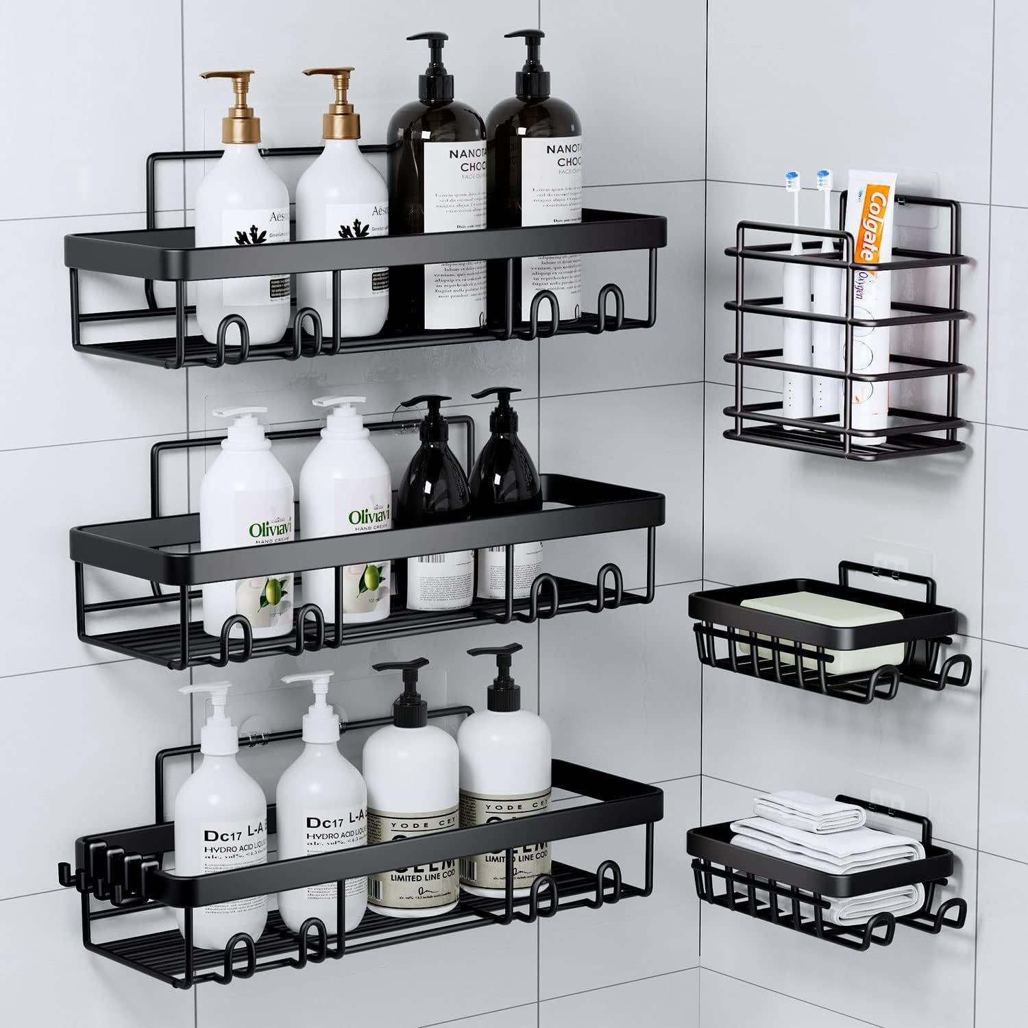 Organizer adesivi resistenti per un bagno ordinato, senza fori.